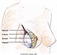 ![]() Новый субфасциальный метод: размещение силиконового импланта под фасцией |