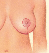 Подтяжка груди при помощи разреза вокруг ареолы соска и разреза, уходящего вертикально вниз от ареолы