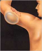 Силиконовый баллон (экспандер) помешается под кожу рядом с рубцом, который мы хотим скорректировать. Постепенно баллон надувается путем заполнения его физраствором и раст