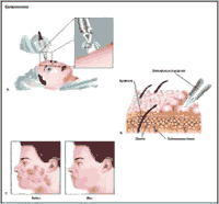 Речь идет о специальной щеточке, которая используется для шлифовки рубцов на лице после угревой сыпи, а также других послеоперационных шрамов. Метод основан на отшелушивании кожи. Операция может быть выполнена под местной анестезией или седацией.