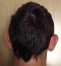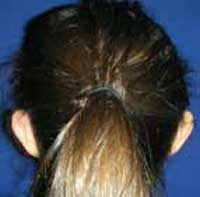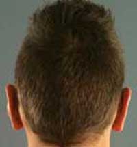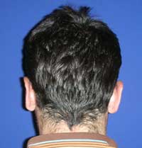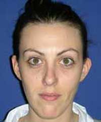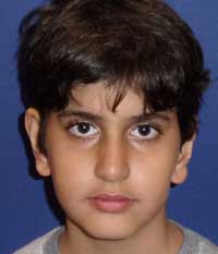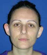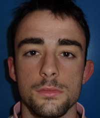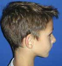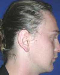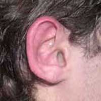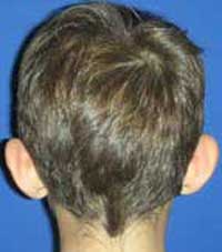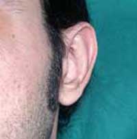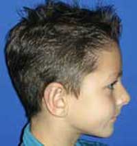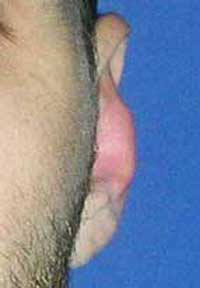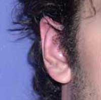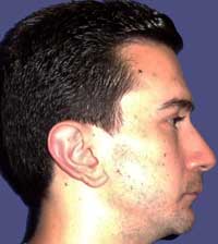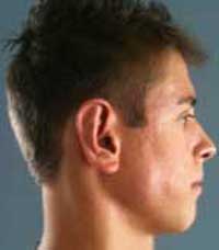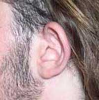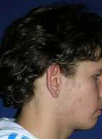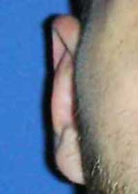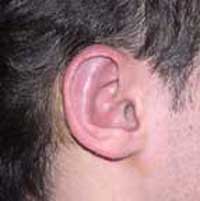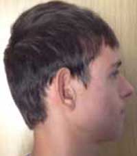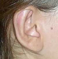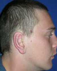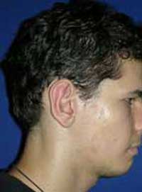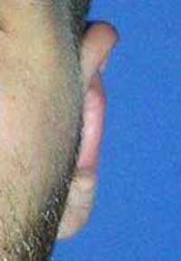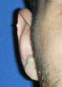 Отопластика ушей с характерно выраженными оттопыренными мочками (фотография анфас) и дефектом развития спирали ушной раковины (фотография профиля)