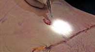 - Накладываются швы, которые укрепляются тканевым клеем.